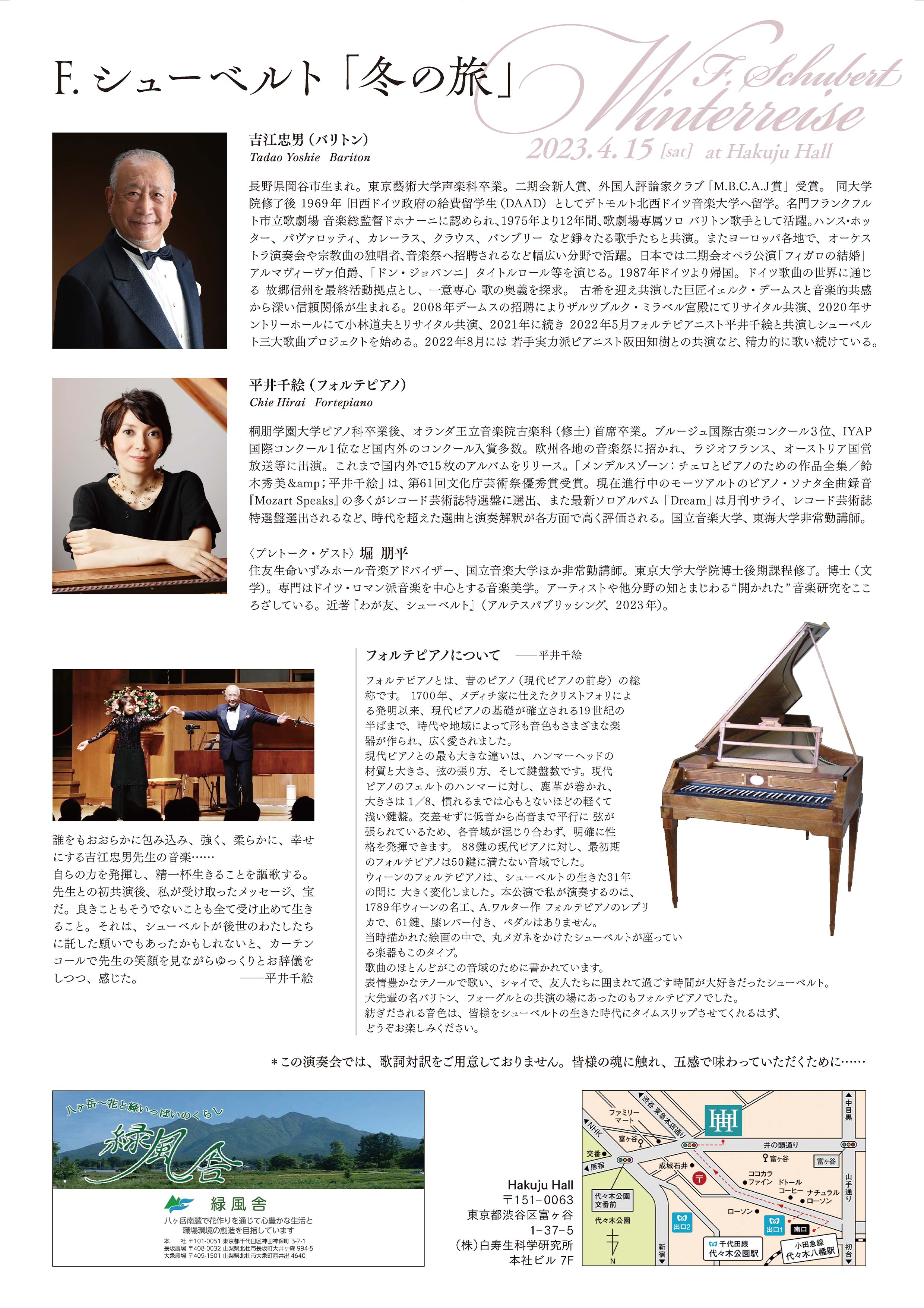 出演:吉江忠男(バリトン) 平井千絵(フォルテピアノ)