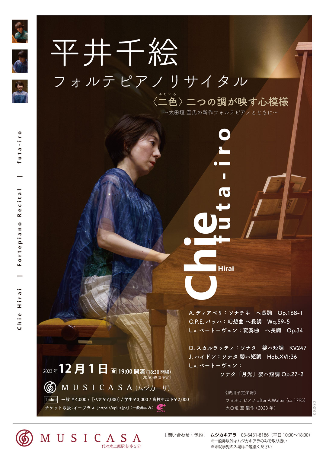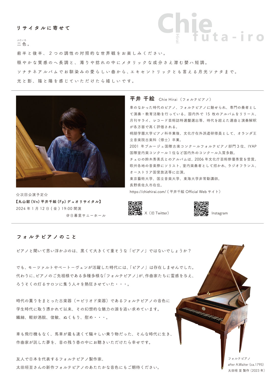 ○使用するフォルテピアノ : after A.Walter(1795) 太田垣至製作 2023年