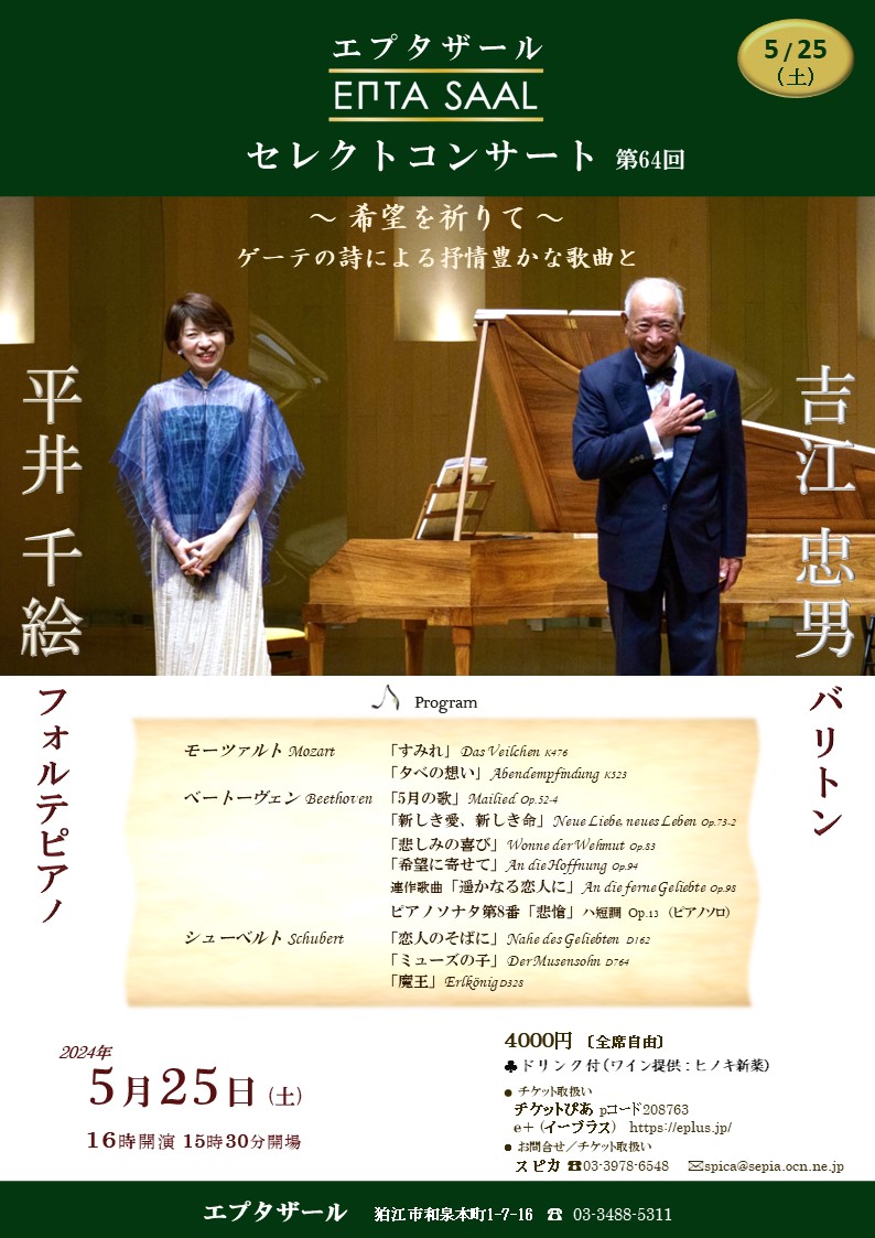 出演 吉江忠男(バリトン) 平井千絵(フォルテピアノ)
