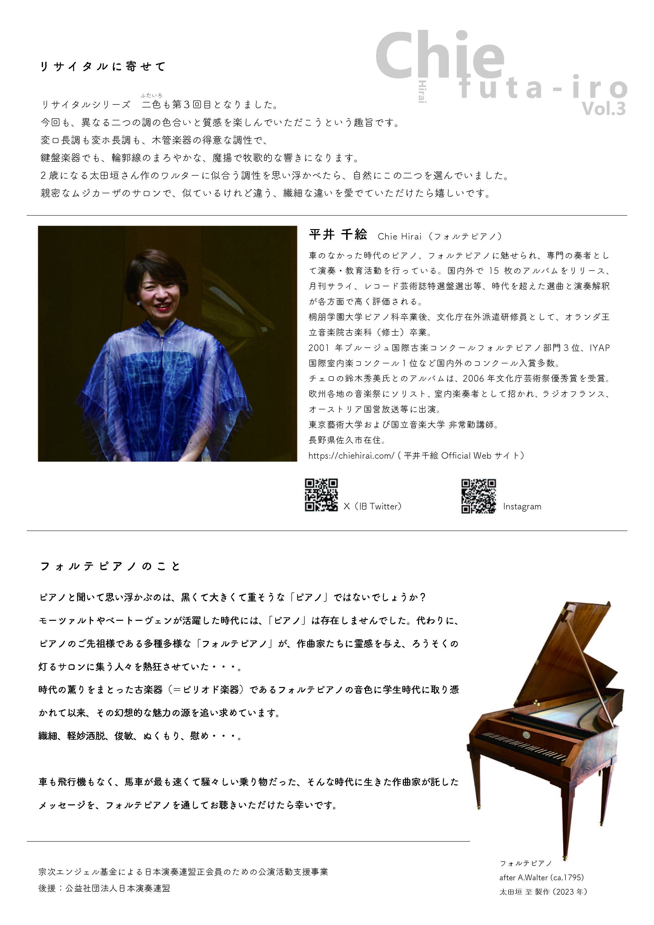 平井千絵フォルテピアノ コンサート シリーズ「二色」Vol.3~二つの調が映す心模様