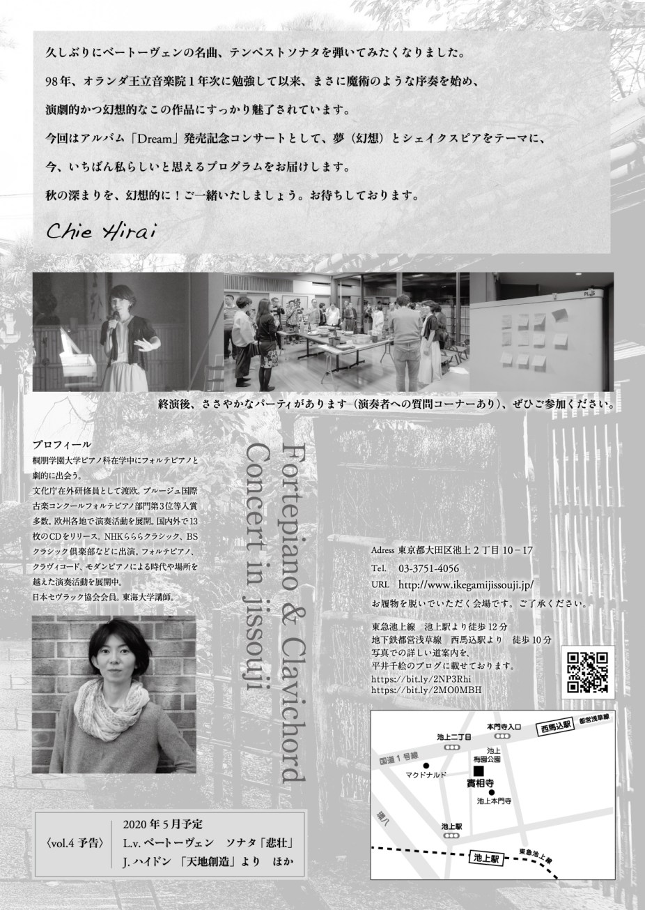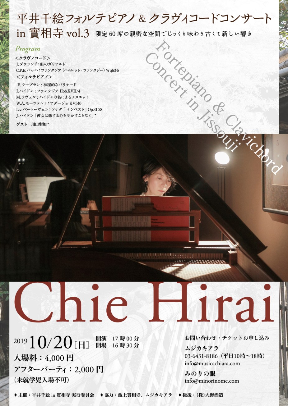 『平井千絵 フォルテピアノ&クラヴィコードコンサート in 池上實相寺 vol.3』