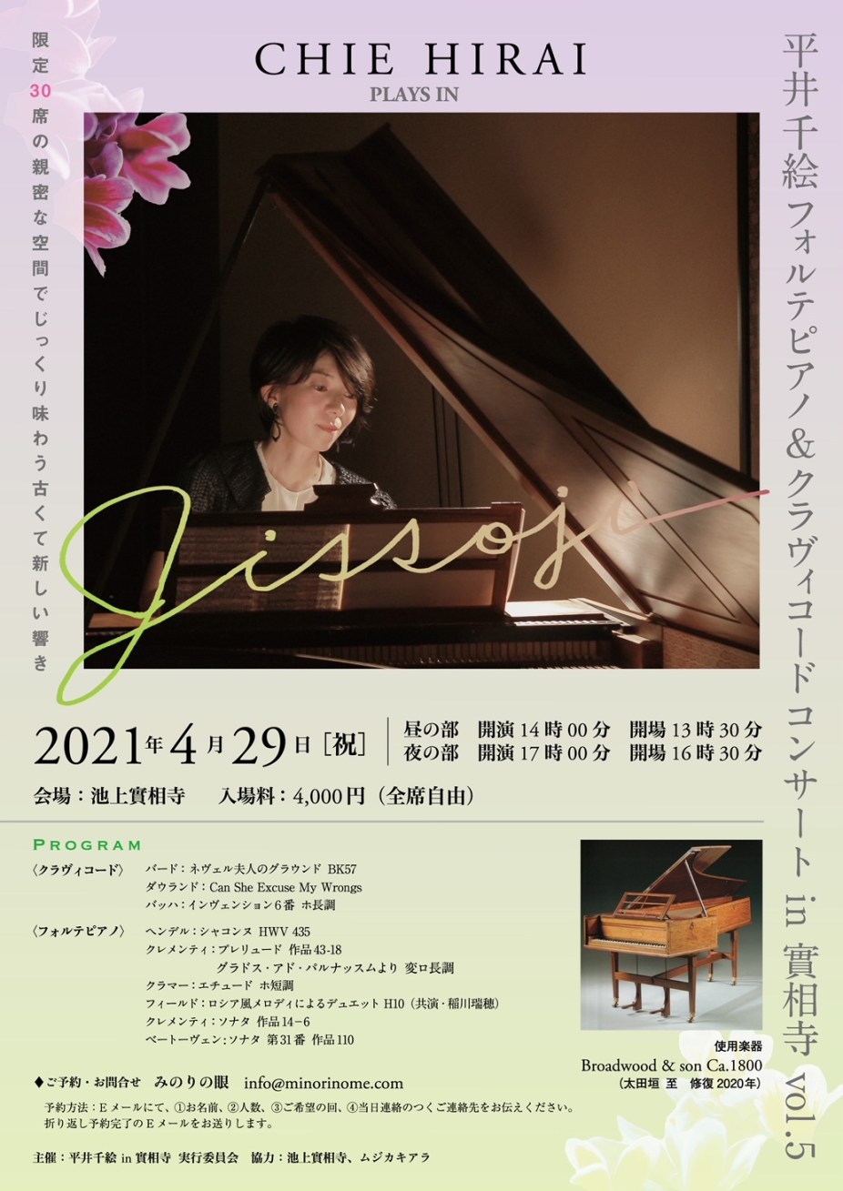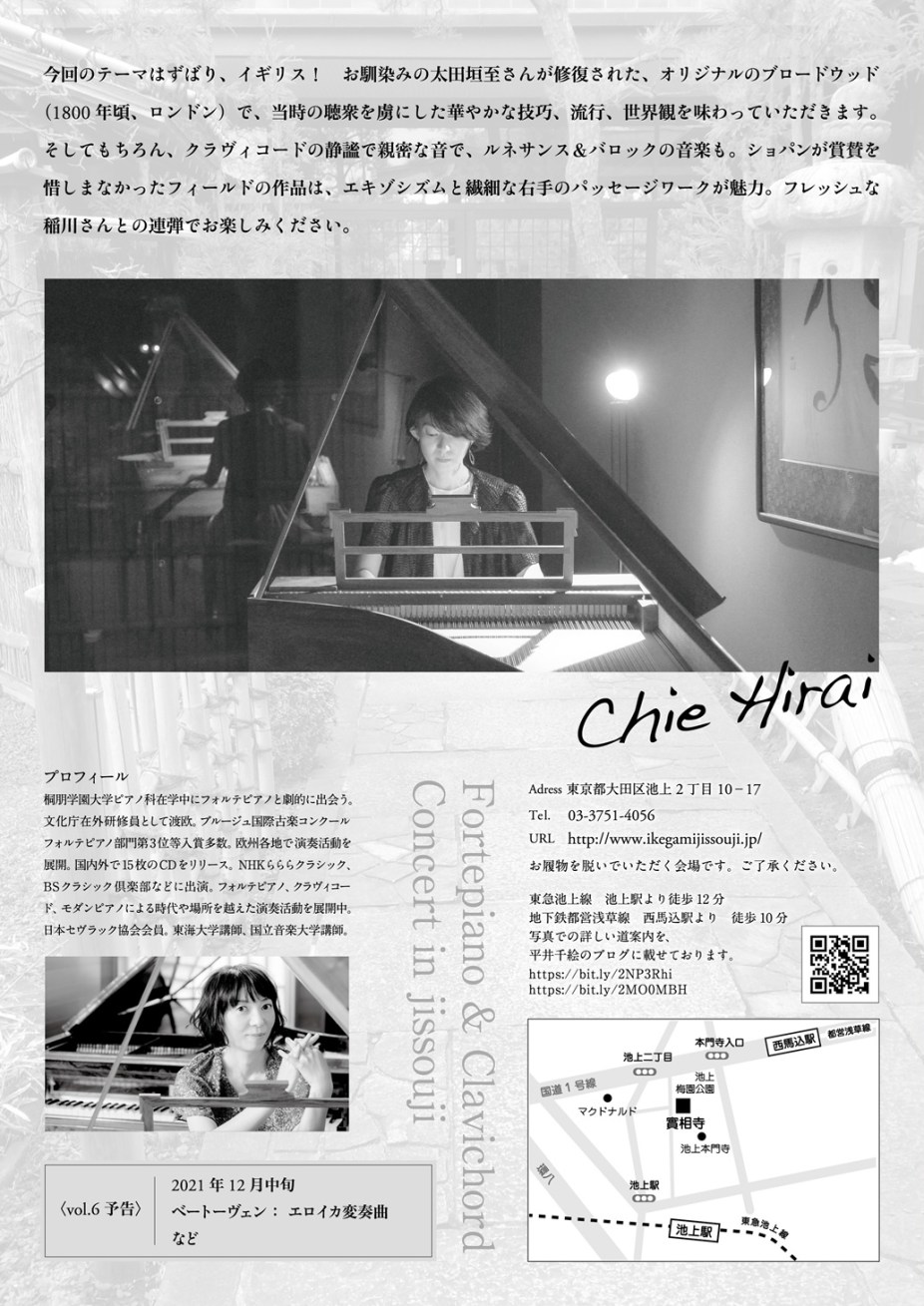 『平井千絵 フォルテピアノ&クラヴィコードコンサート in 池上實相寺 vol.5』