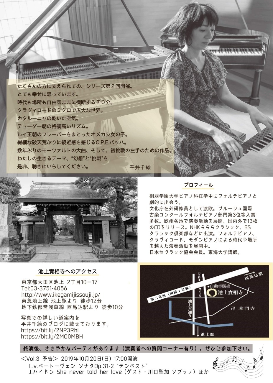 『平井千絵 フォルテピアノ&クラヴィコードコンサート in 池上實相寺 vol.2』